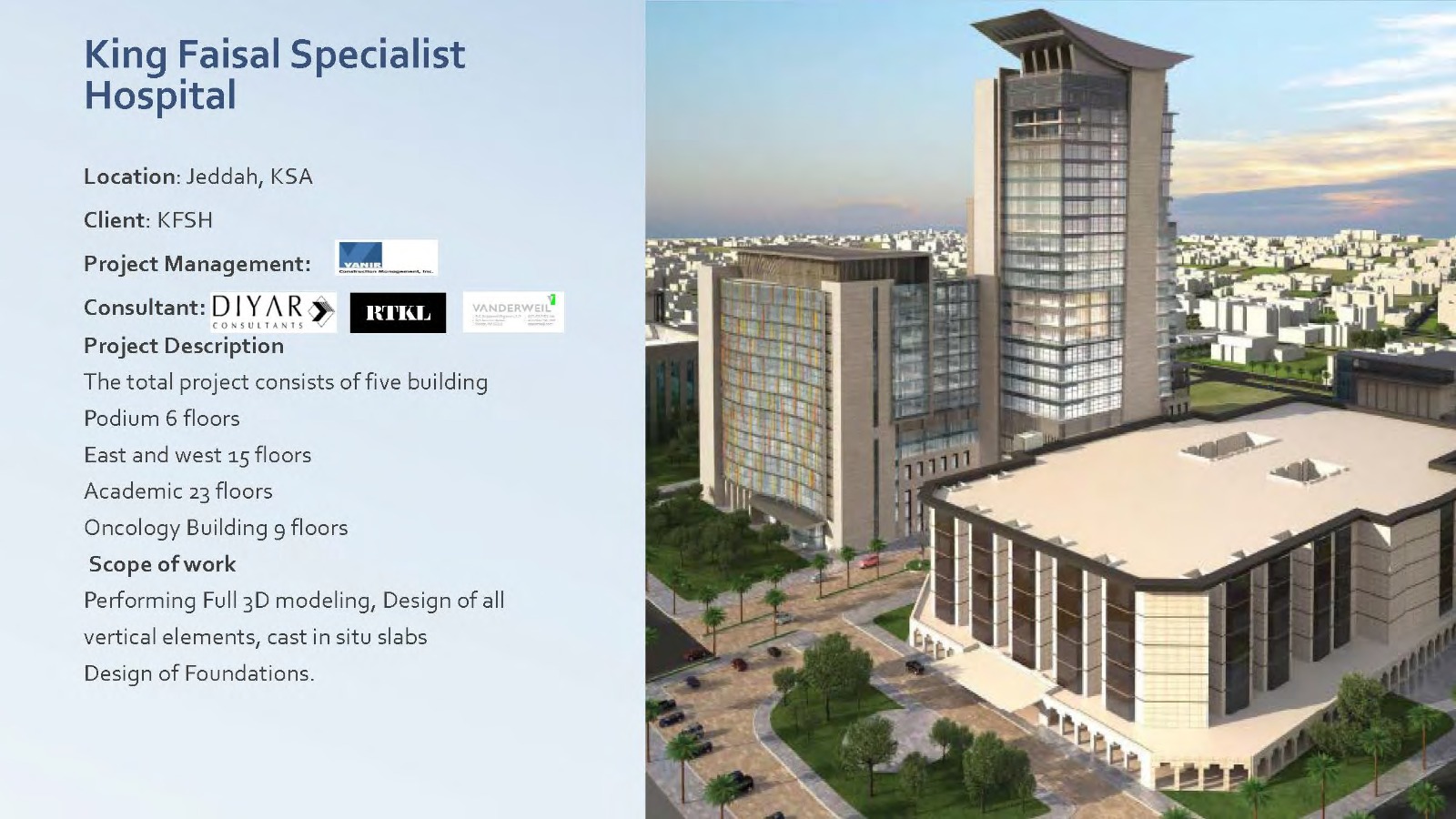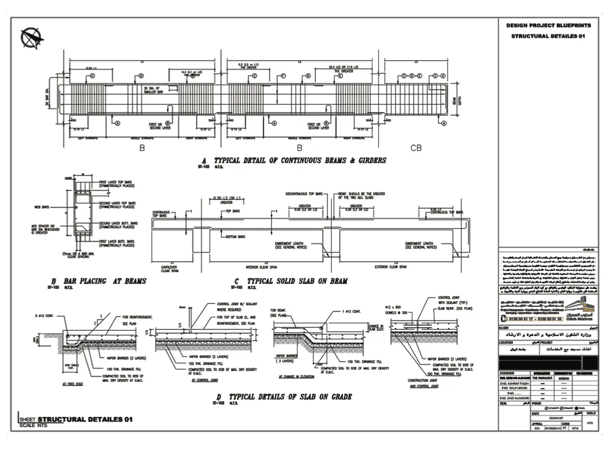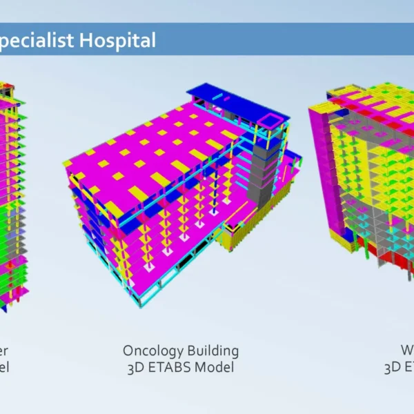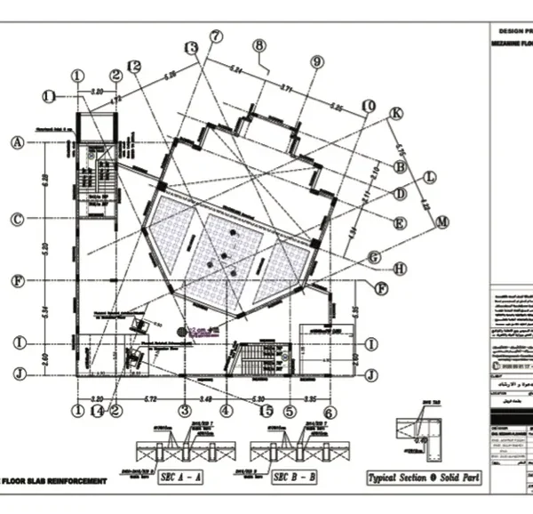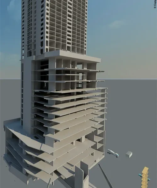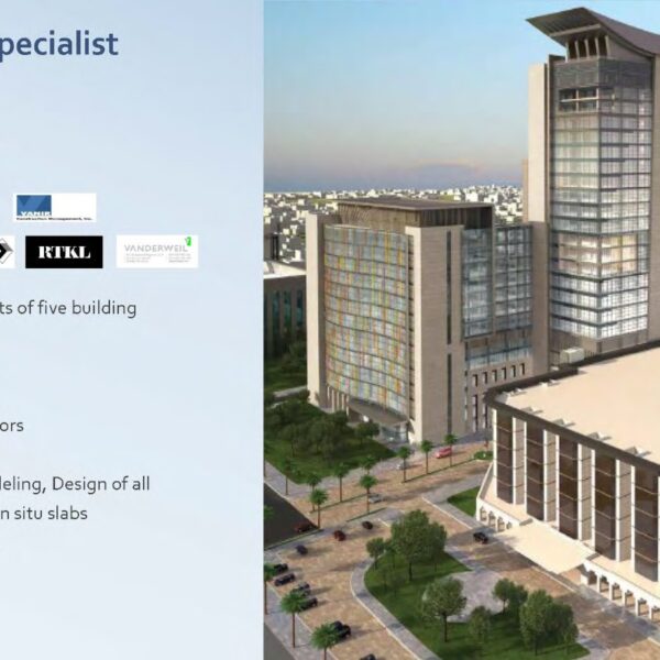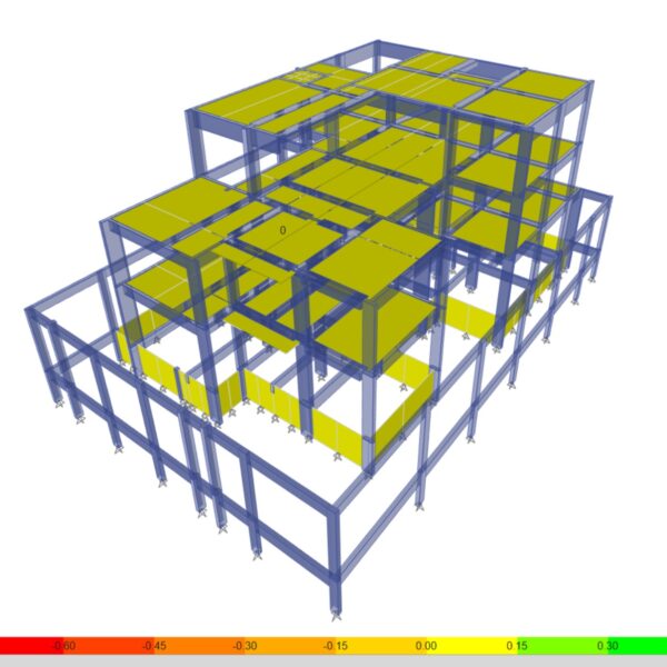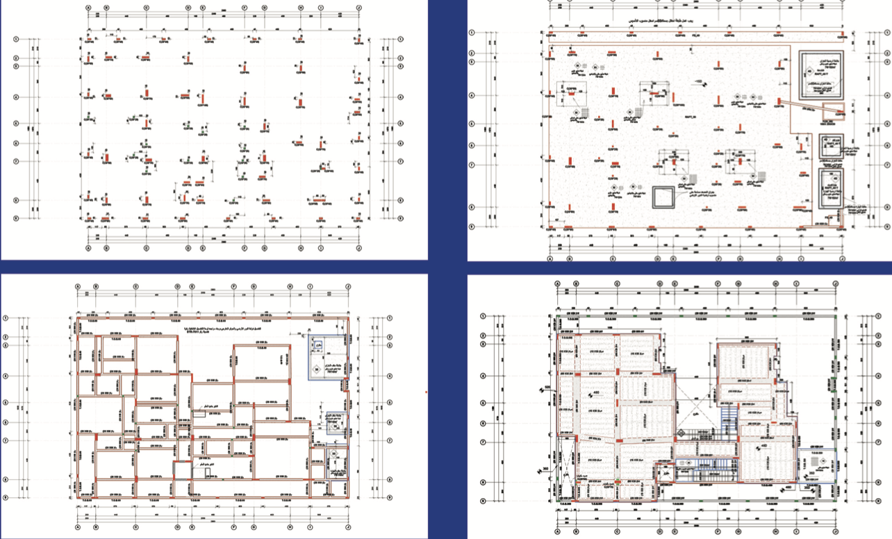 تم عمل دراسة انشائية للمقاول ، لتحليل البلاطات ودراسة فروق الترخيم وتأثيرها على الواجهات وتقديم الحلول المناسبة