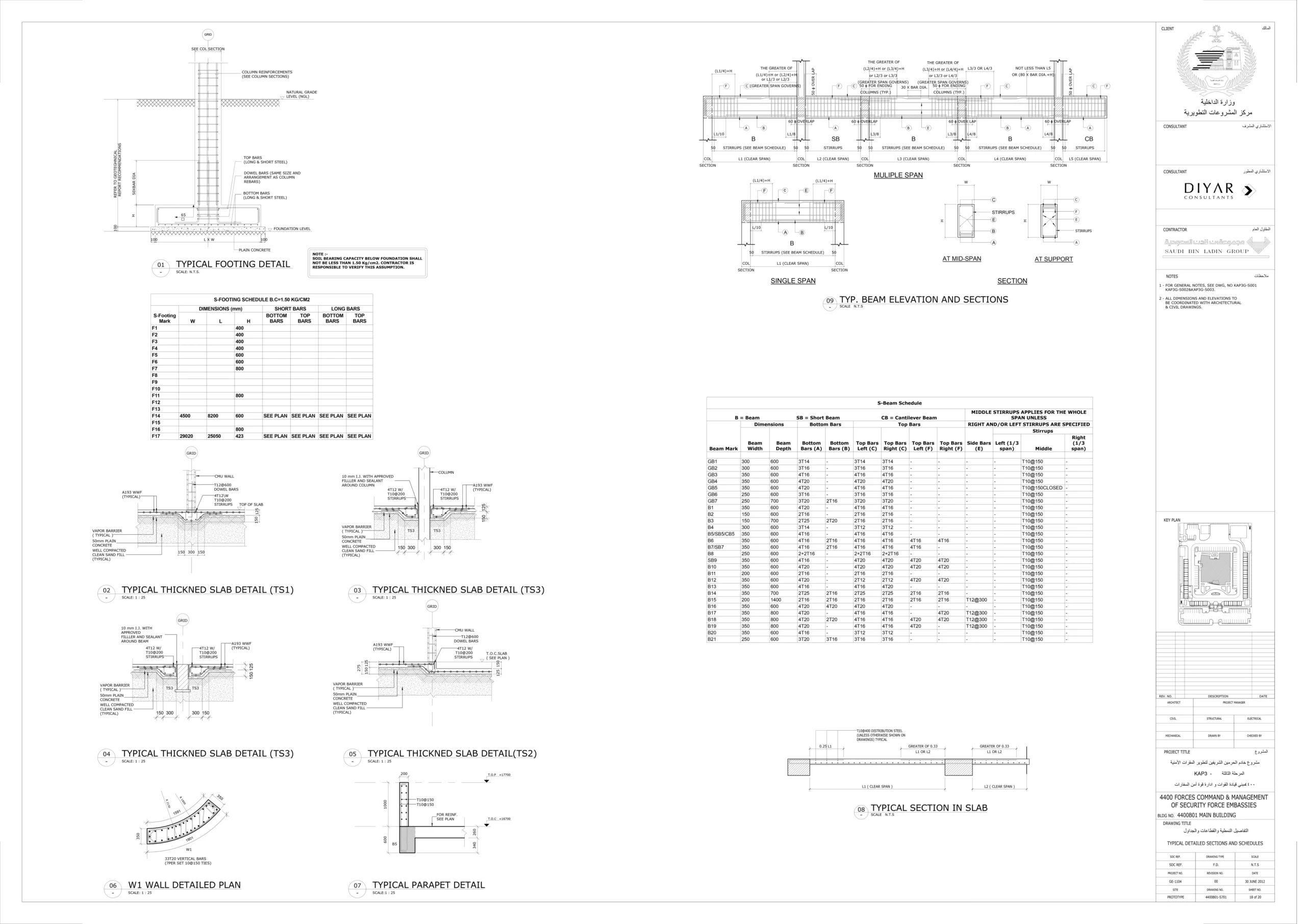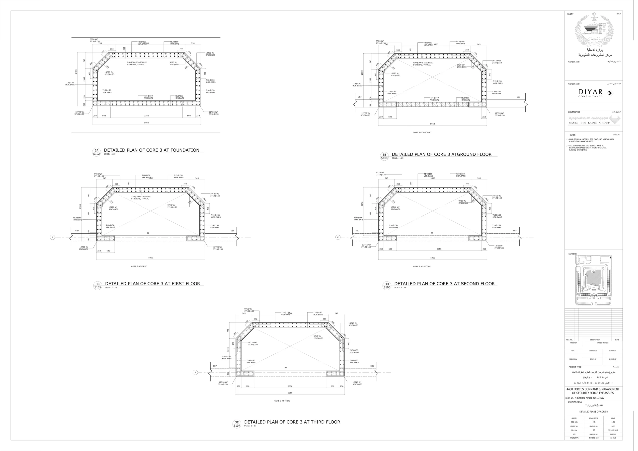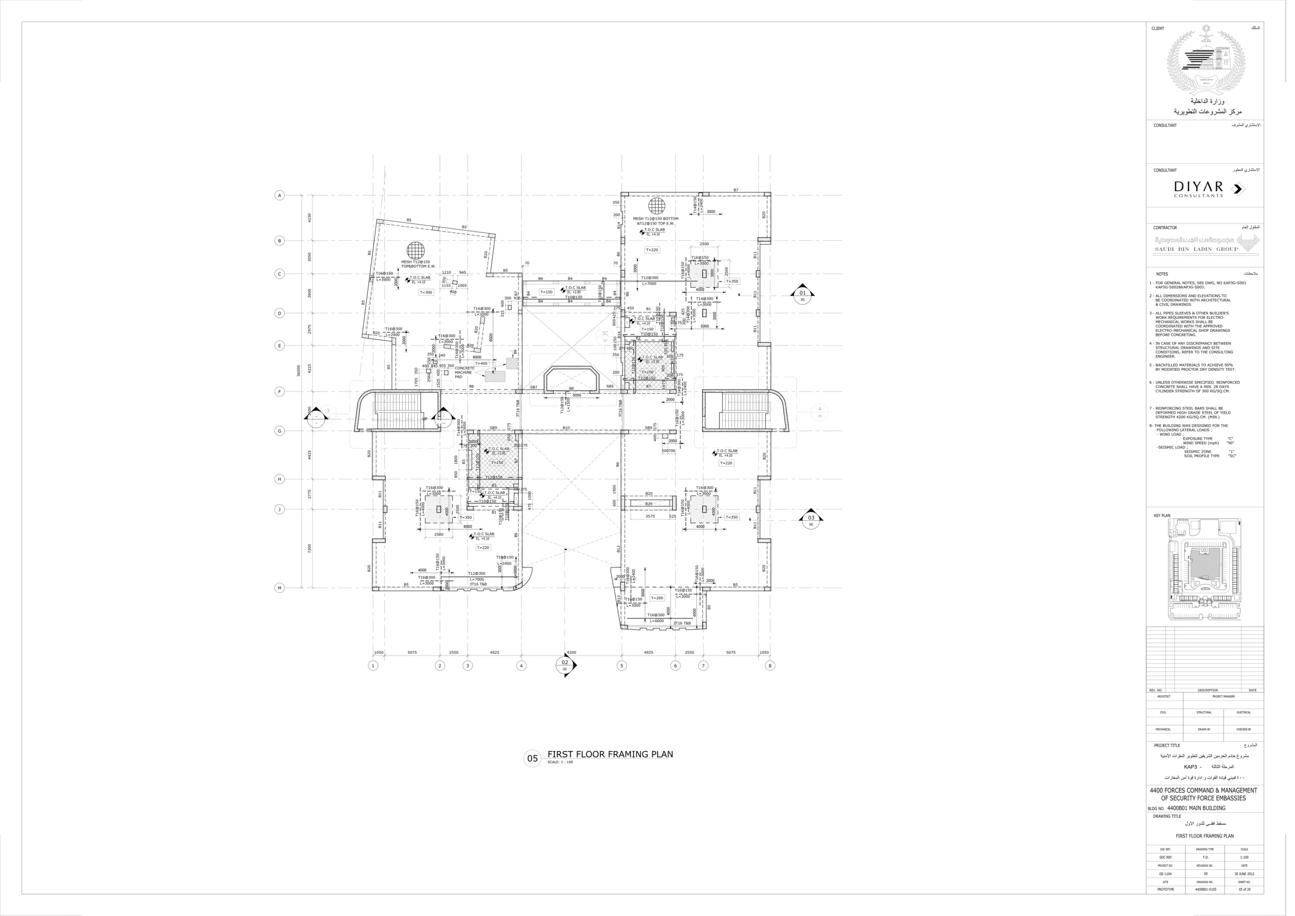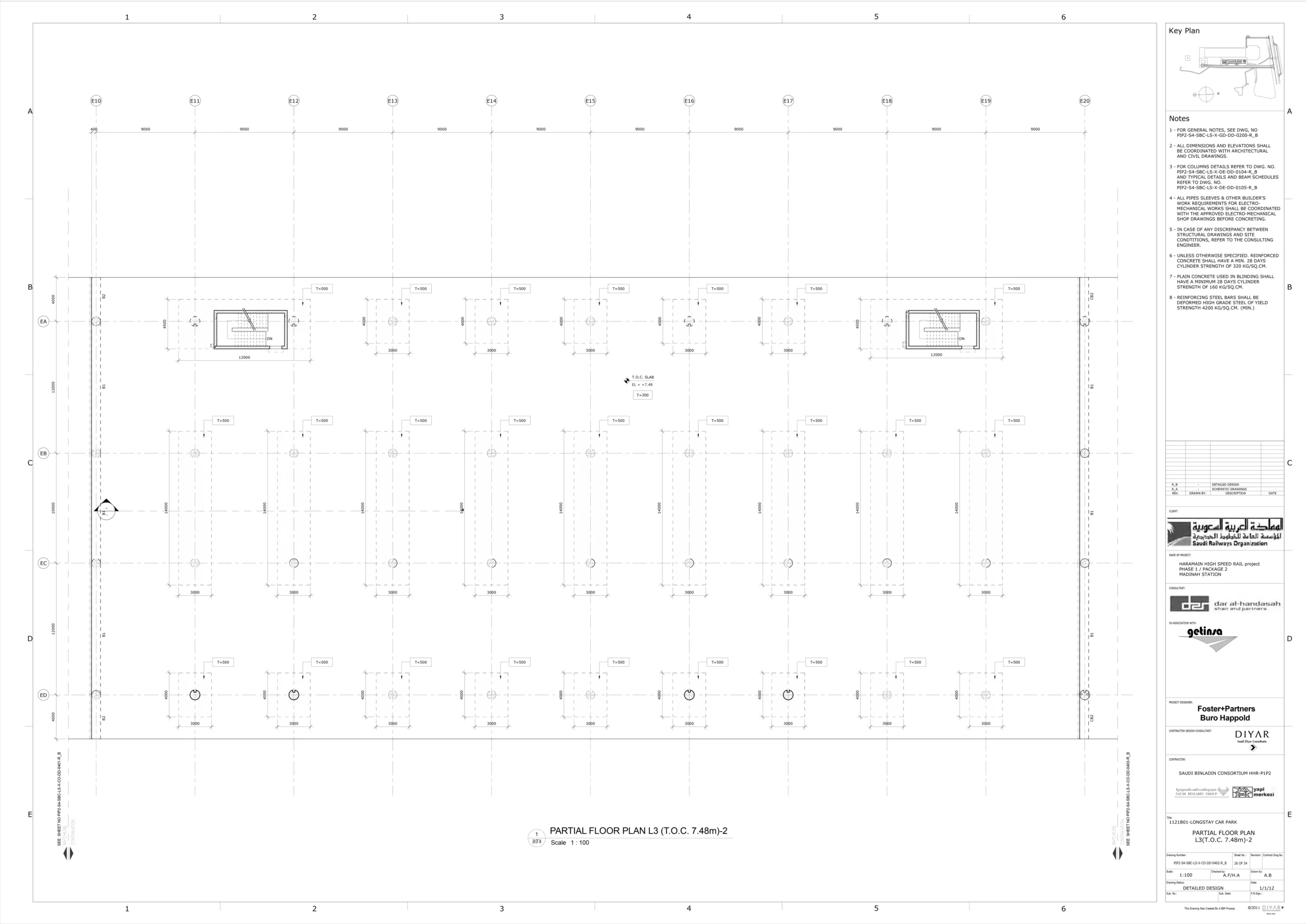 تم عمل دراسة انشائية للمقاول ، لتحليل البلاطات ودراسة فروق الترخيم وتأثيرها على الواجهات وتقديم الحلول المناسبة