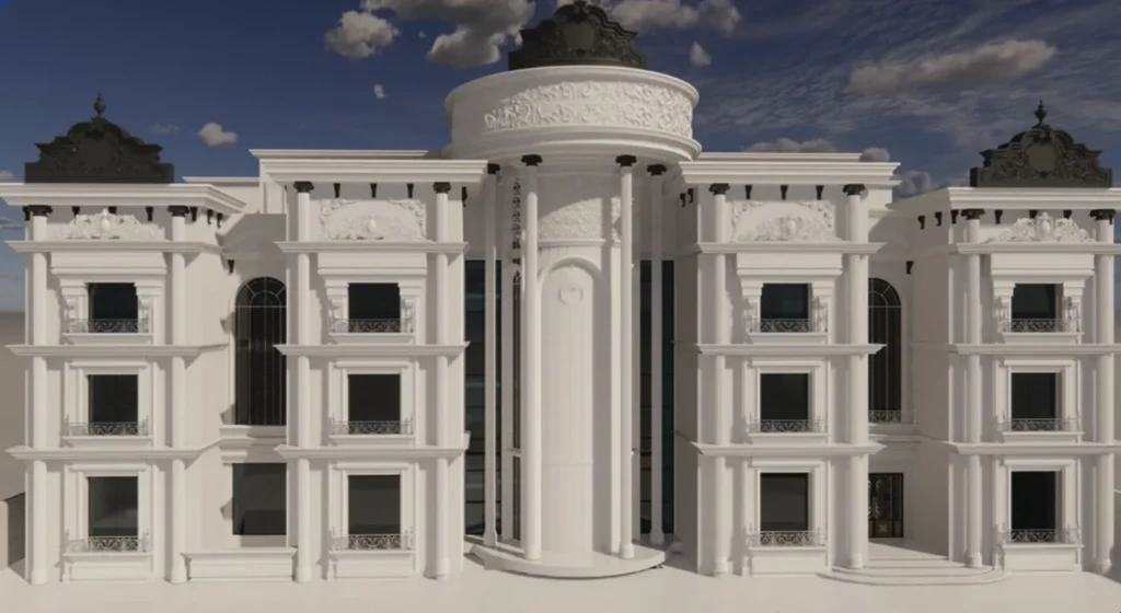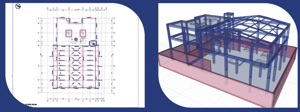 قاعة مناسبات بالمملكة العربية السعودية بجدة ذات مباني خرسانية مدمجة ايضاً بمنشئات معدنية من خلال إستخدام برنامج الأوتوكاد وايتابس